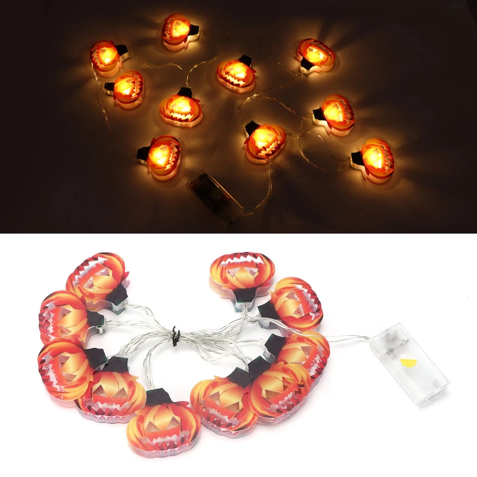 10 Led Pumpkin String Lights Waterproof Halloween Decor For Party Indoor Outdoor