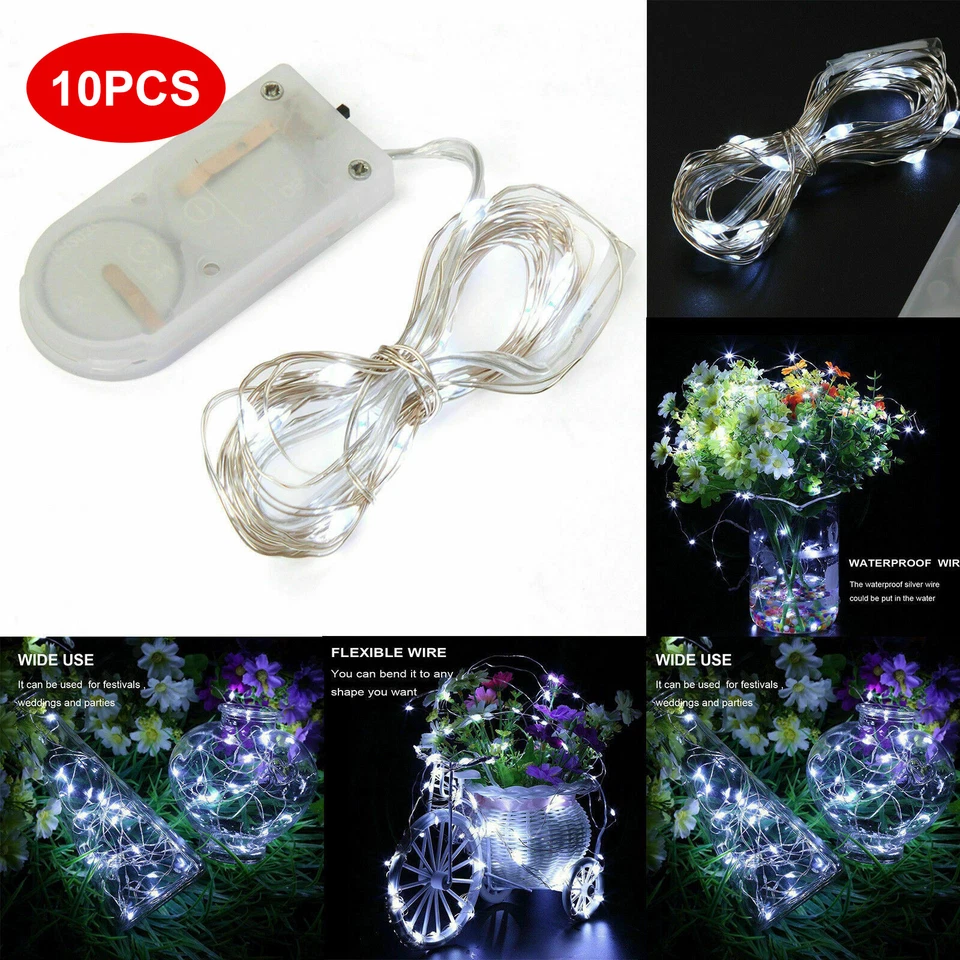 10Pcs 2M 20Led Fairy String Lights Button Cell Powered Copper Wire Mini Light
