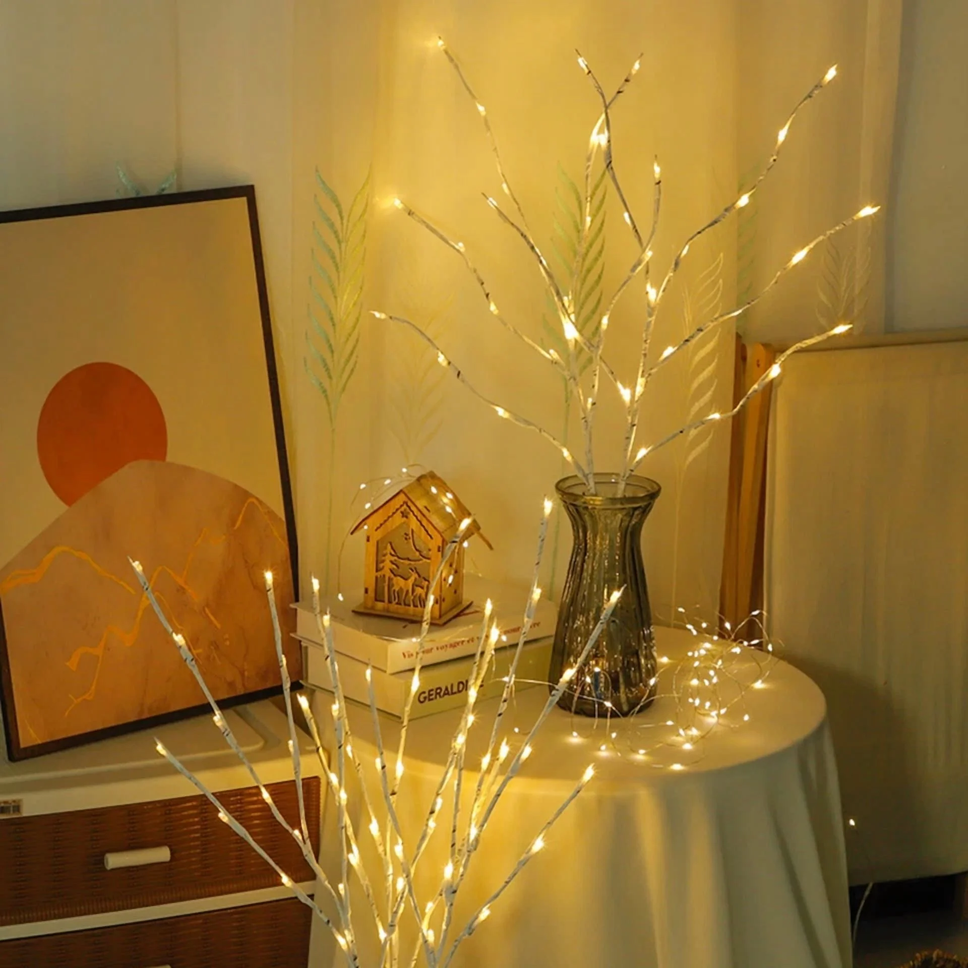 2-Pack White Birch Twig Branch Lights Lighted Branches For Home Holiday Party