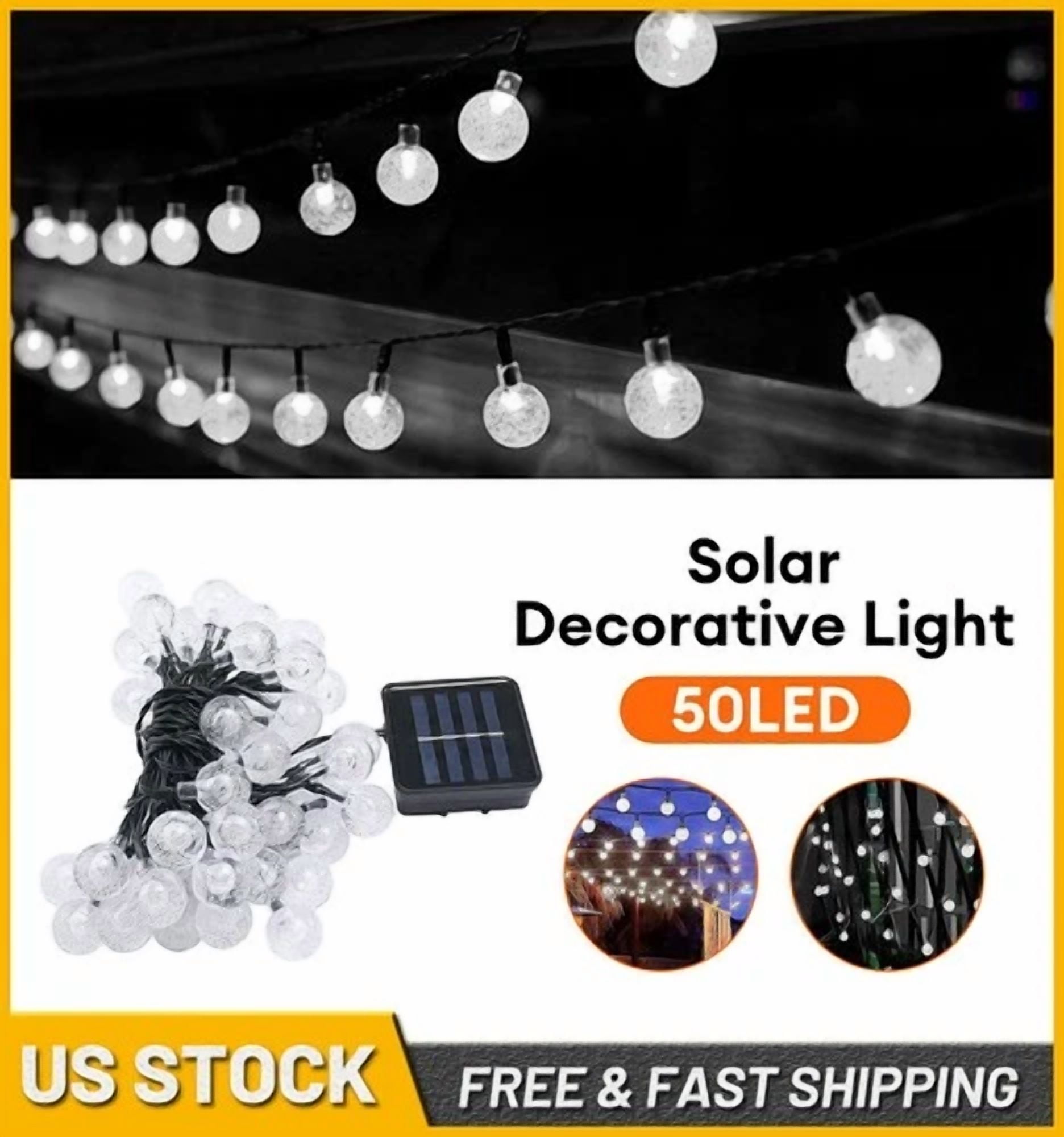 23Ft 50 Led Outdoor Solar Powered String Lights For Patio Yard Porch Party Decor