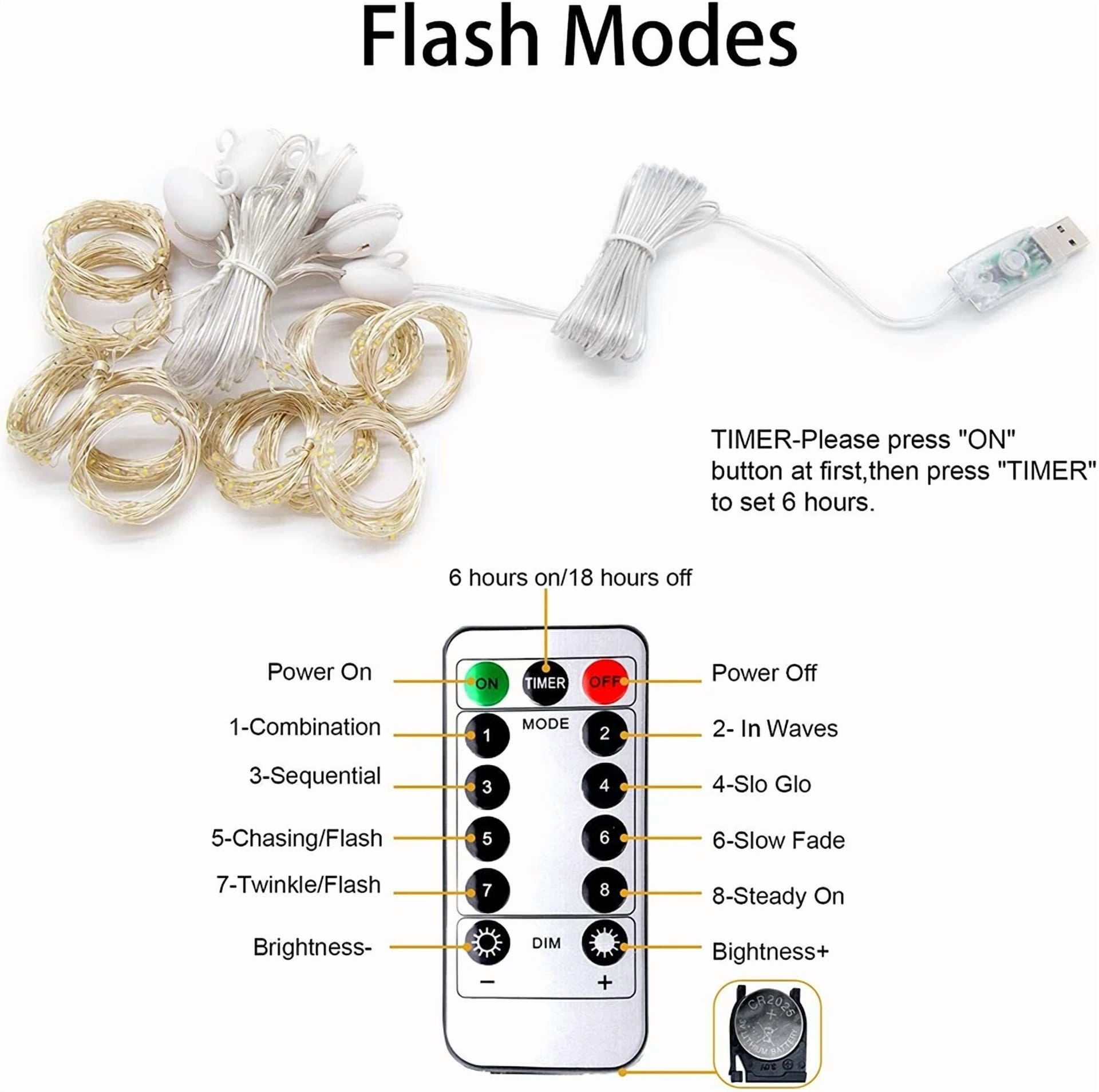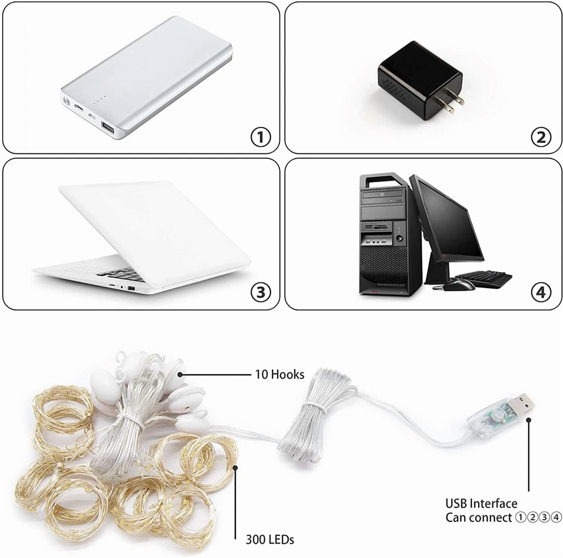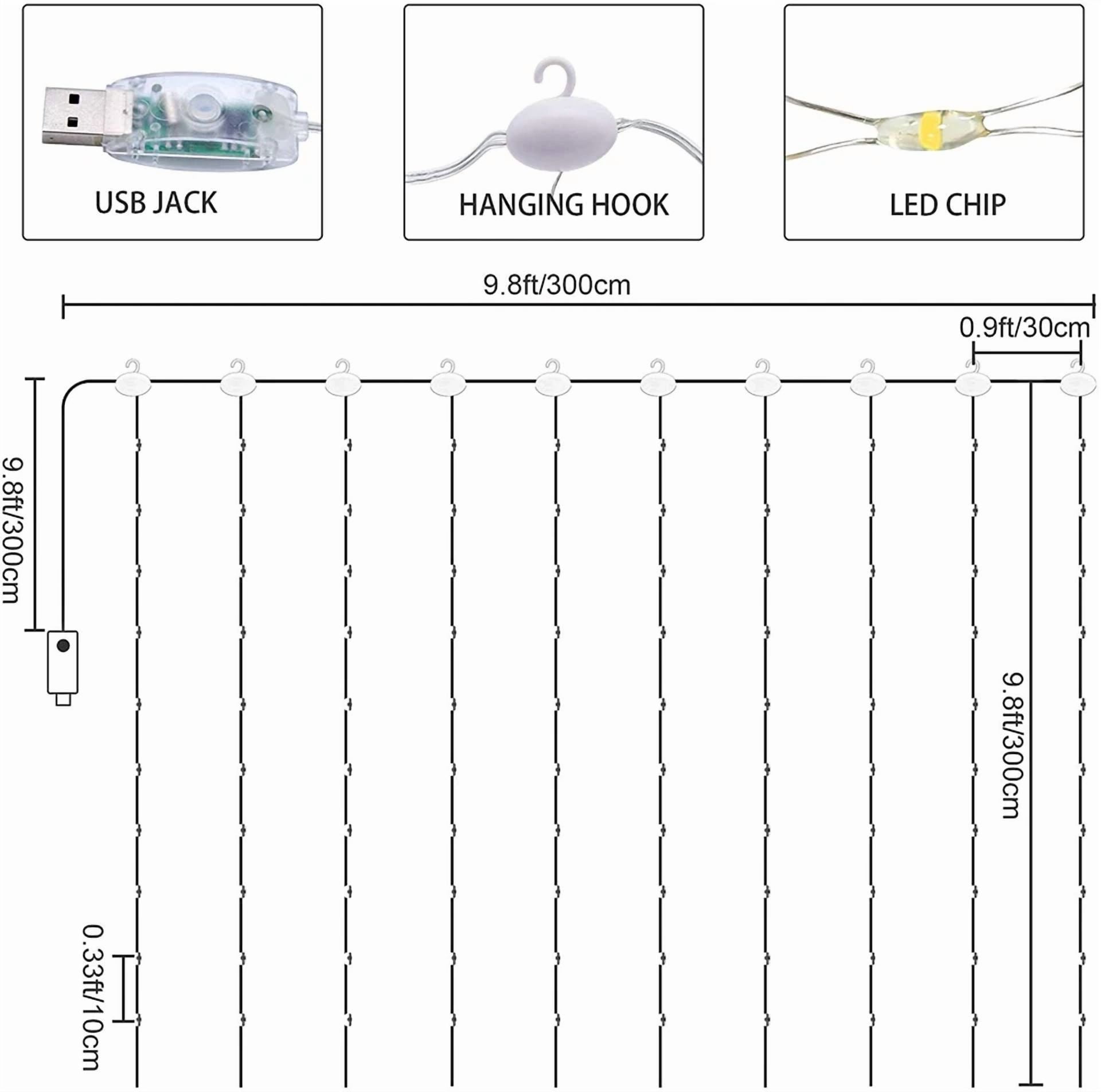 300 Led Curtain Fairy String Lights Usb Twinkle Window Party W/Remote Warm White