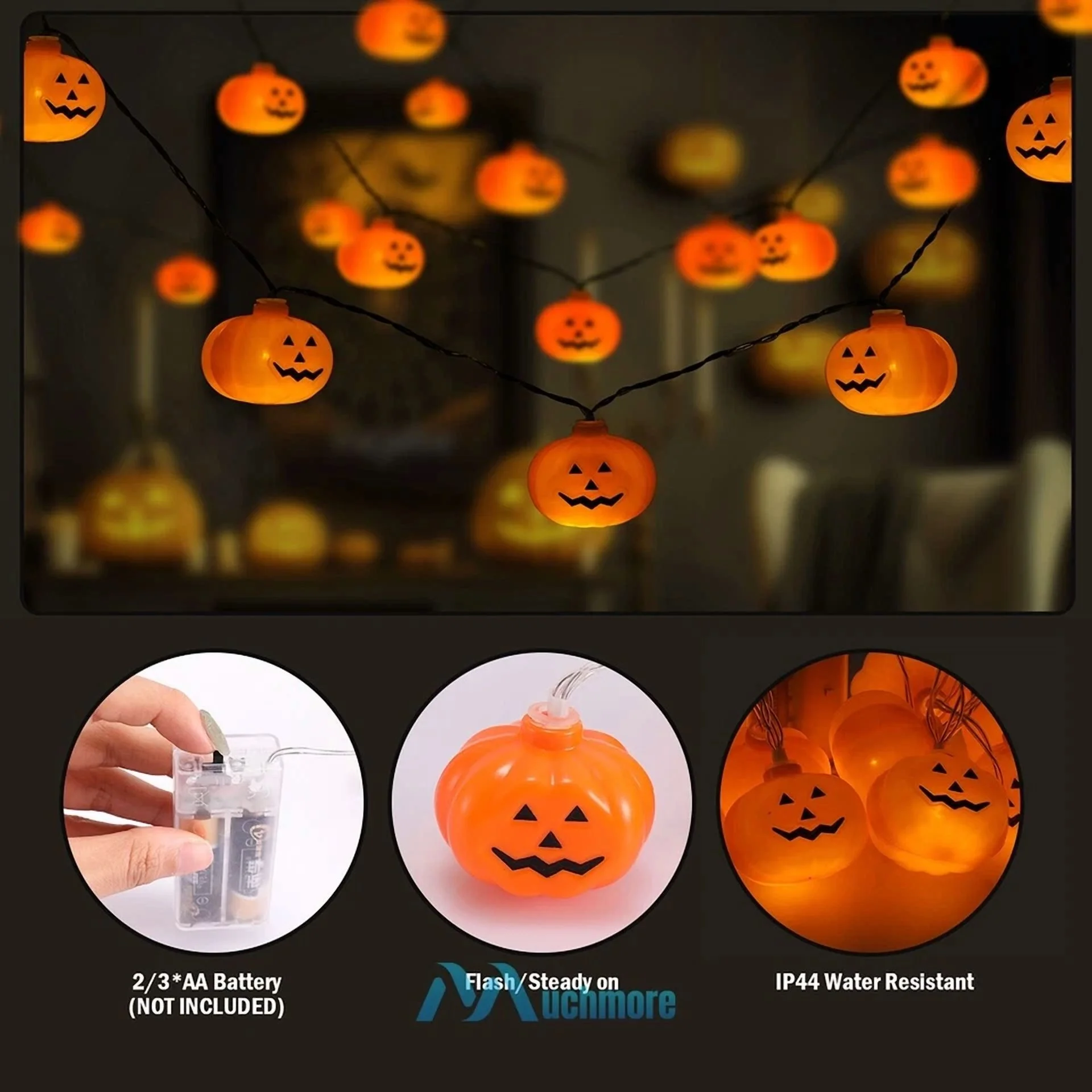 Halloween String Lights, Led 20 Pumpkin Lights Holiday Lights For Outdoor Indoor