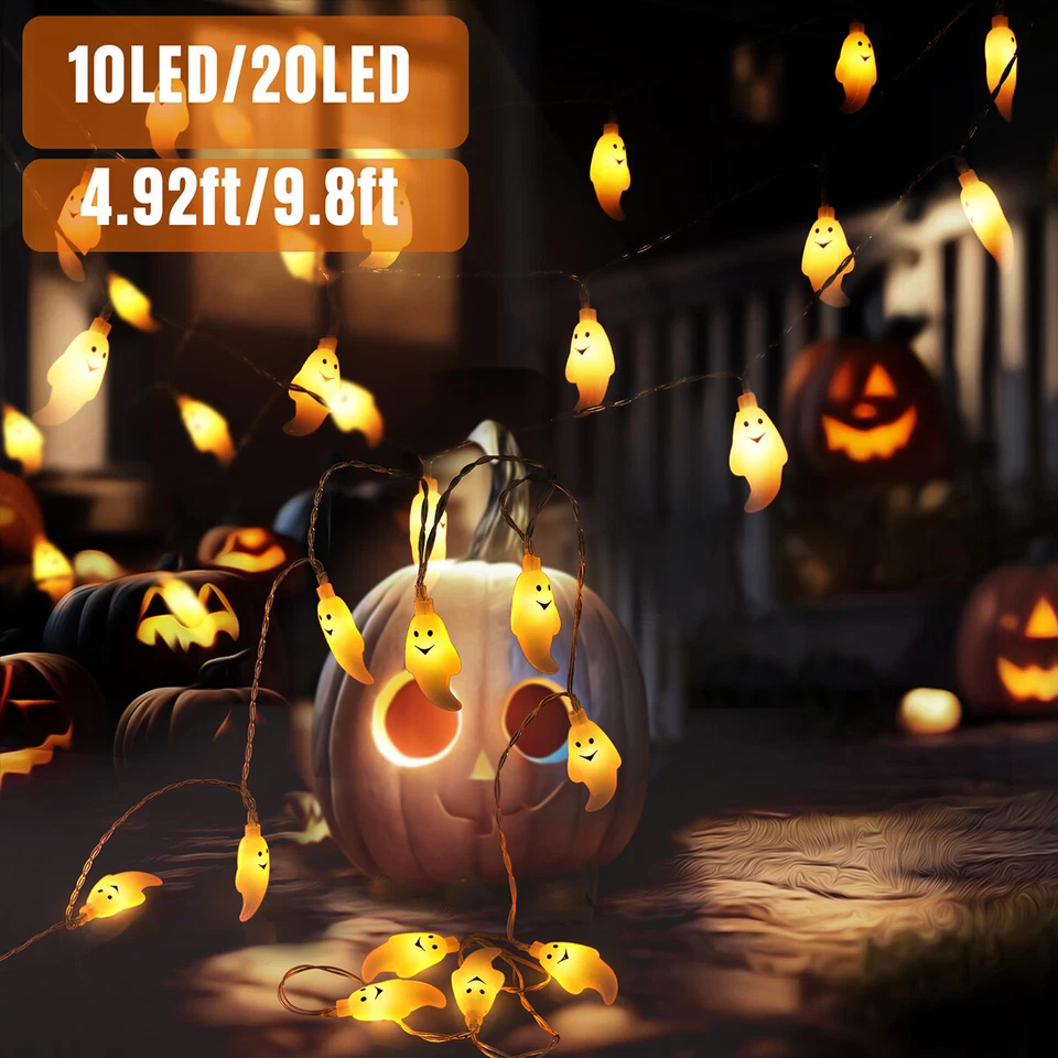 Halloween’S String Lights Battery Operated 20 Led Ghost String Light Party Decor