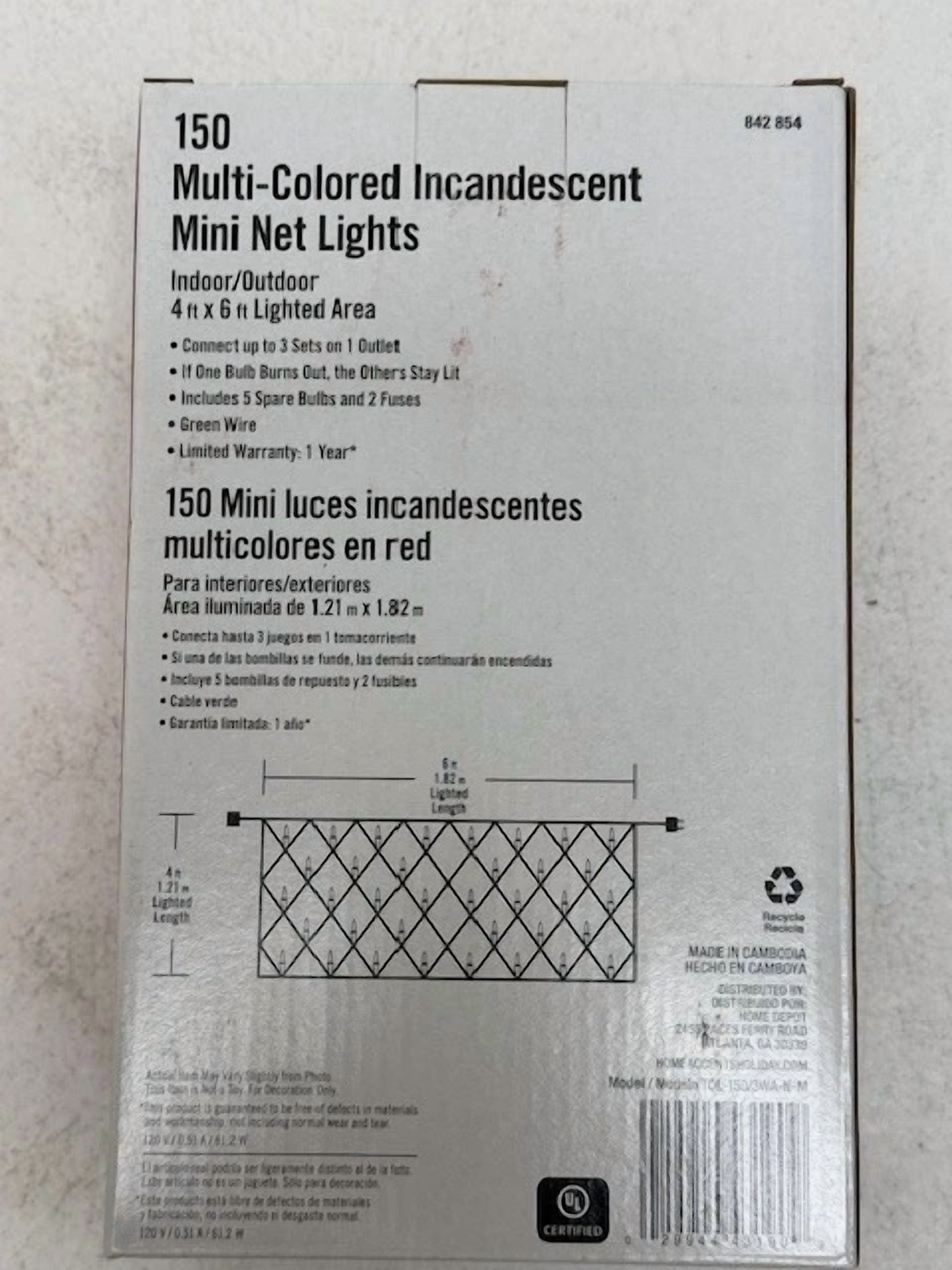Home Accents 150 Multi-Colored Incandescent Mini Net Lights 4X6 Ft Christmas