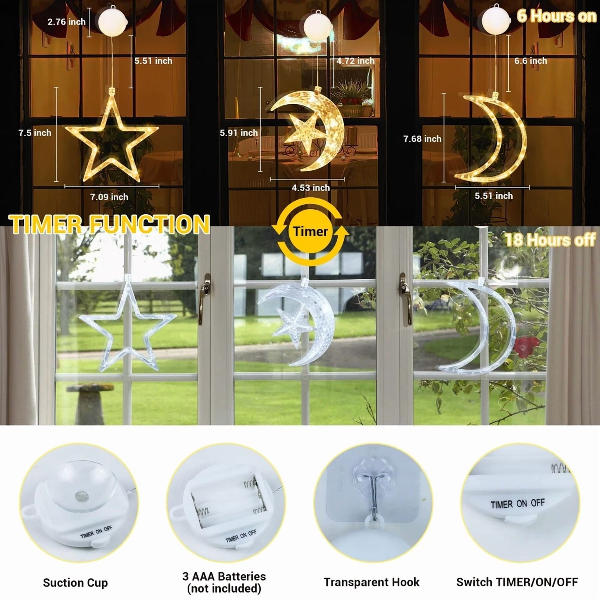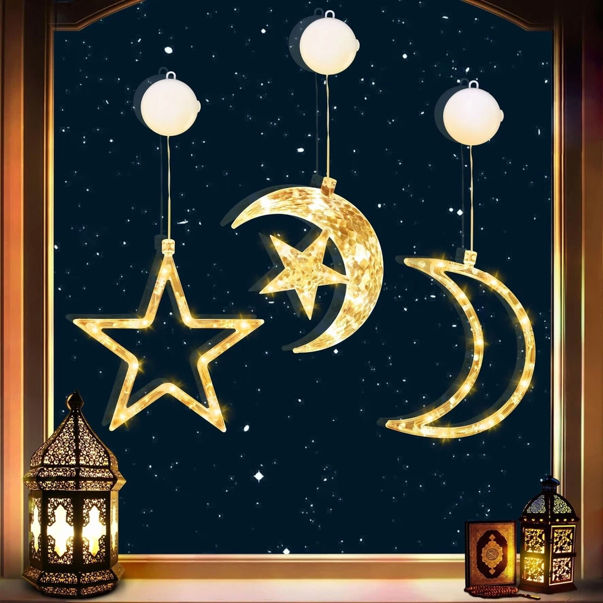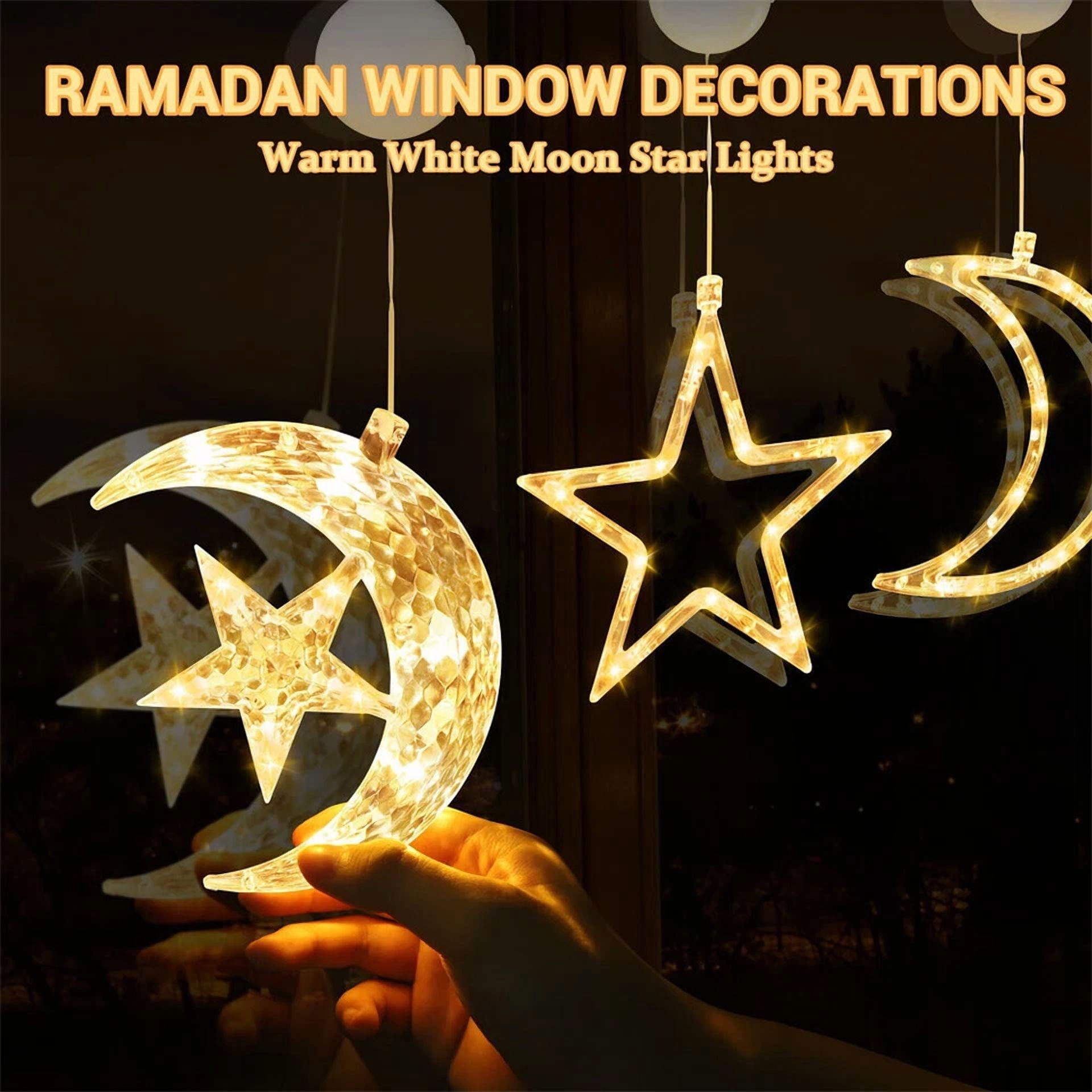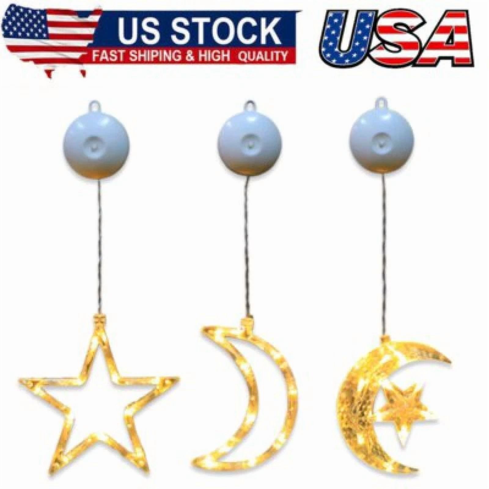 Ramadan Decorations Moon Star Window Lights 3 Pack Eid Mubarak Decorations Party